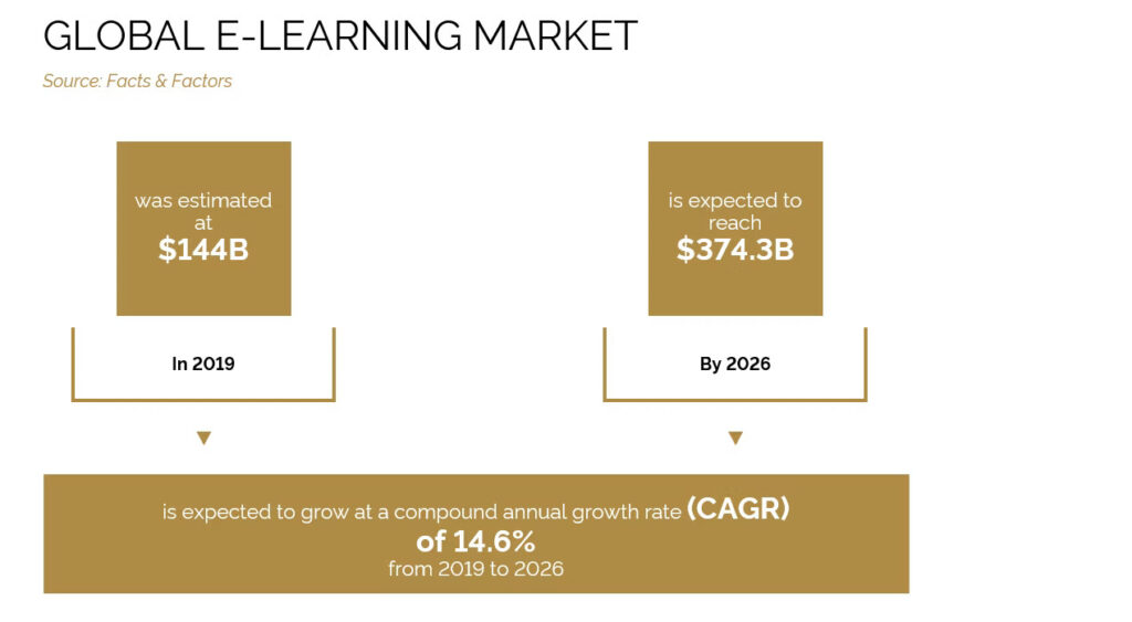 The global value of e-learning in 2019 was $144 billion, and this figure is expected to surge to $374.3 billion by 2026. The numbers never lie; e-learning is set to become the default method for how most people accrue knowledge in the future.