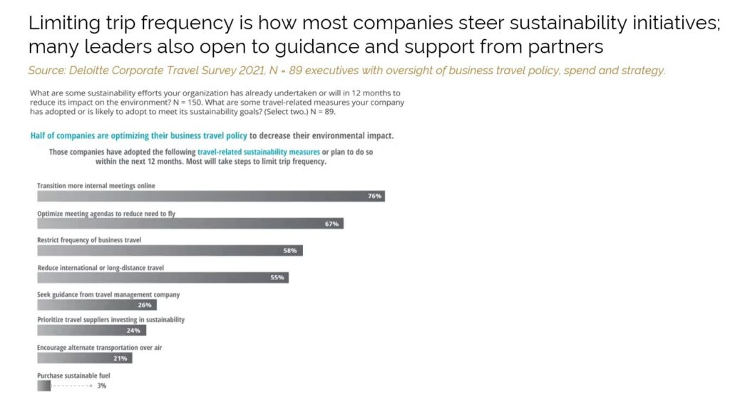 A recent Deloitte Insights article on the changing face of work post-Covid revealed that reducing international or long-distance travel will be one of the key approaches as businesses look to hit sustainability targets.