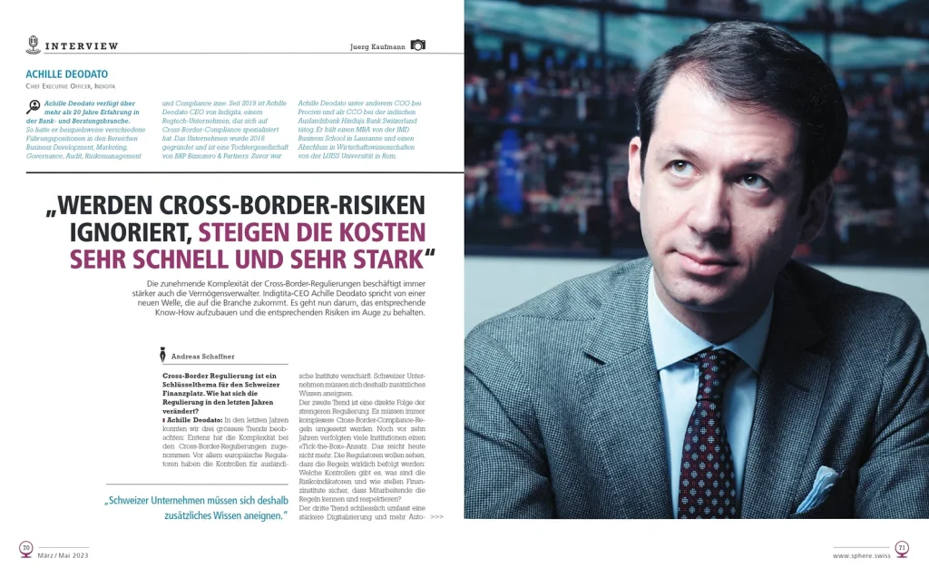 In this interview, Achille Deodato, CEO of Indigita, explains how the increasing complexity of cross-border regulations is having a growing impact on wealth managers. For Mr. Deodato, the industry can no longer ignore what has become a major issue. It is now a matter of developing the necessary know-how and keeping an eye on the related risks.